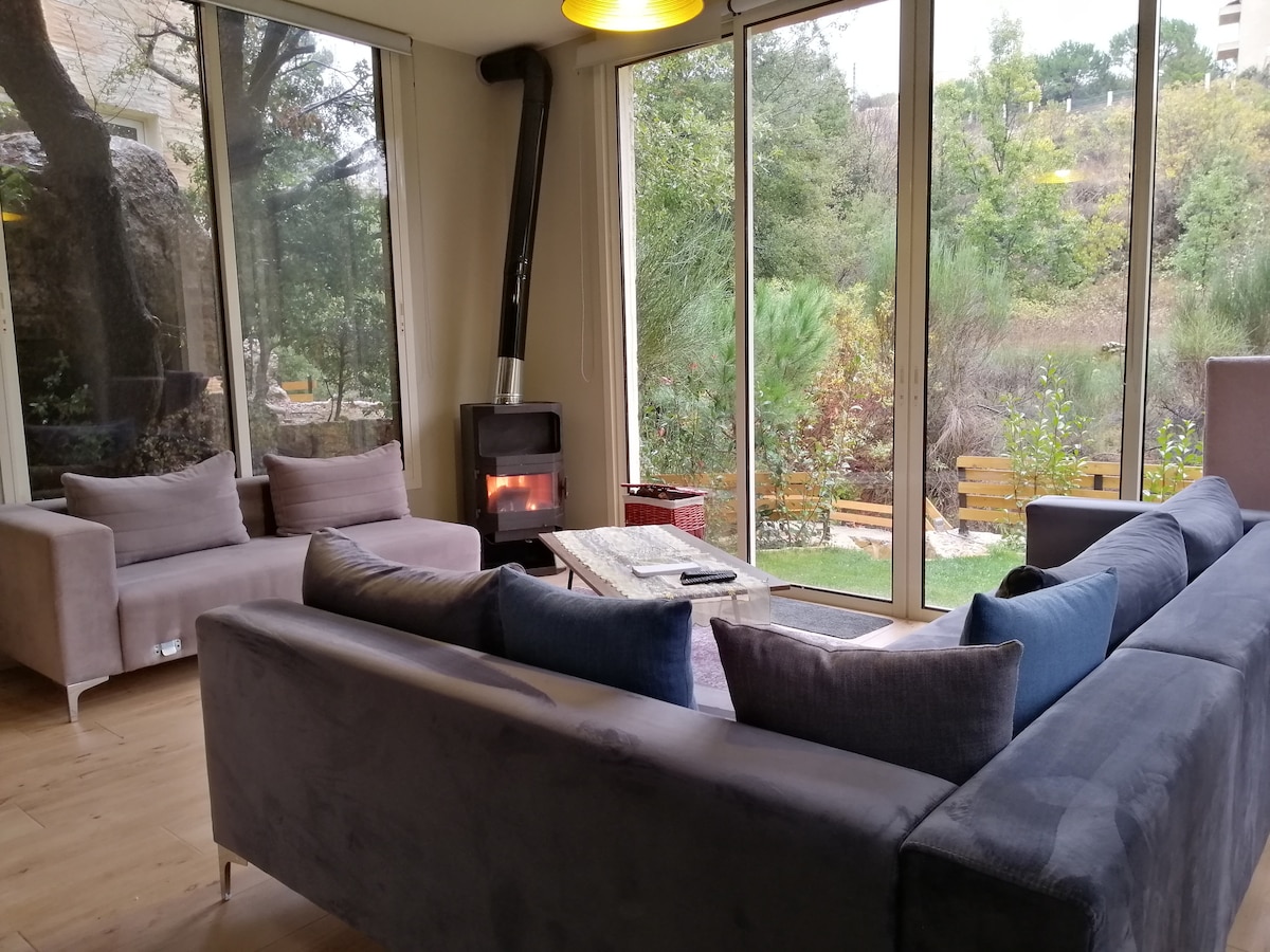Ova jedinstvena vila je opremljena čistim non-stop solarnom energijom, izuzetnim pogledom i zalascima sunca. Unutrašnji kamin, ognjište na otvorenom i mirne bašte za uživanje u boravku. Na raspolaganju su vam bicikl, sto za stoni tenis i bazen. ☺ Takođe je veoma lijepo područje za planinarenje sa košarkaškim i fudbalskim terenom na stepenicama kuće! Ovo je veoma moderno potpuno novo mjesto koje je u potpunosti opremljeno tosterom za mašinsko pranje sudova i robotom za kuvanje. Takođe biste bili na 15 minuta od veličanstvenih vinarija ksara.