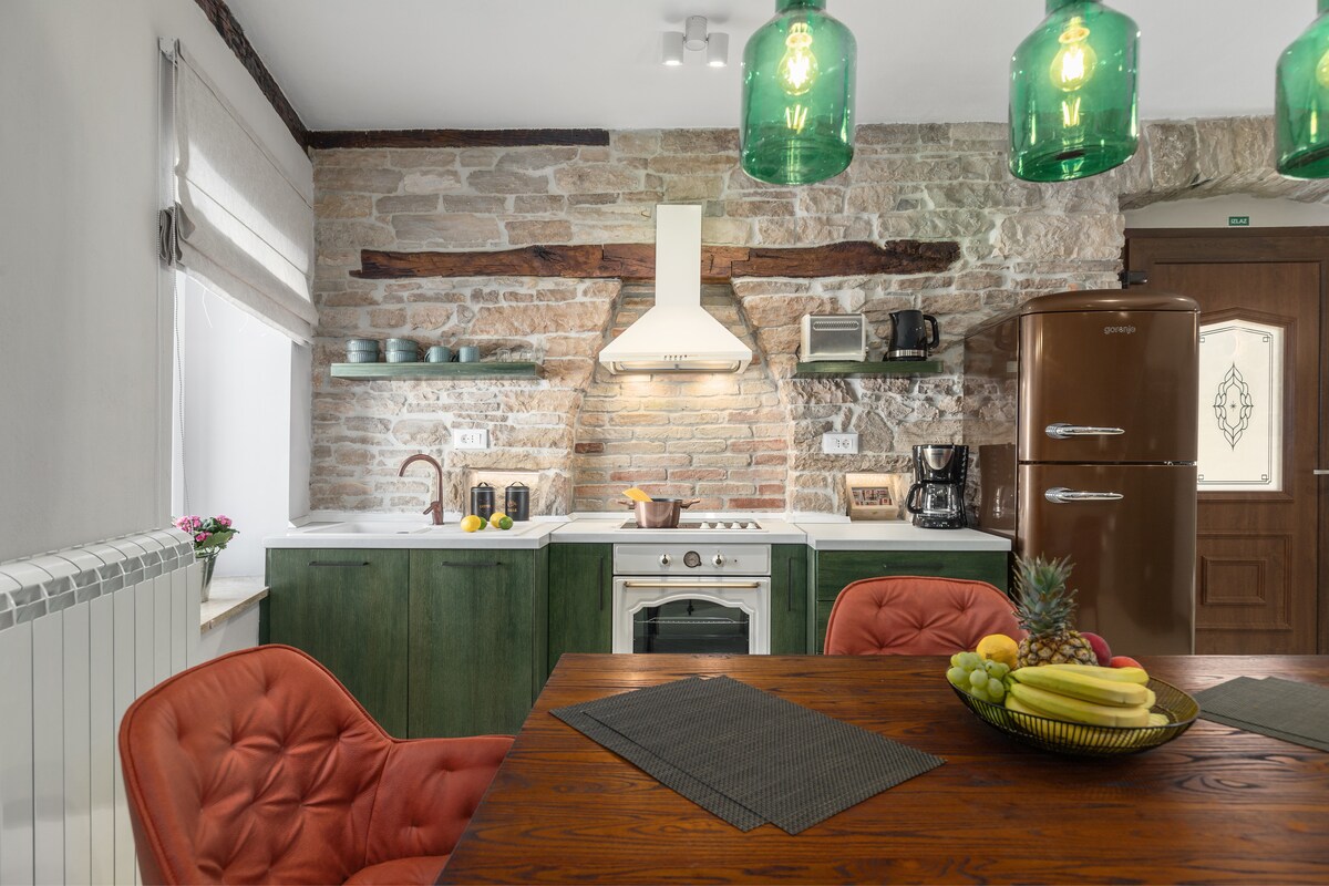 Authentic Istrian stone house built in 1922. This house is fully renovated and equipped to provide you all you need. Modern interior, fully equipped kitchen, relaxing living room, spacious bedrooms with private bathroom, an outdoor dinning area with grill, private pool and parking on the property. Each room is carefully designed by our designer. All this will afford you enjoy your holidays and fill up your batteries.