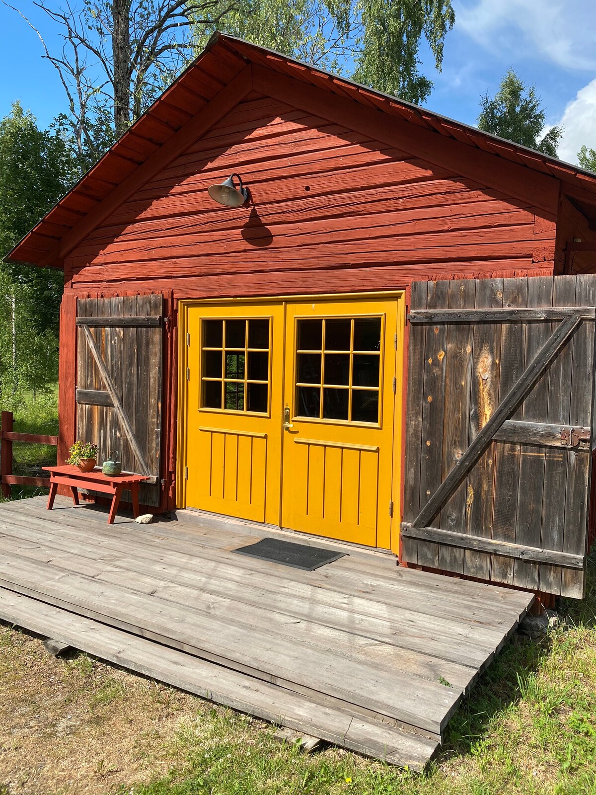 Dobro došli u našu drvenu kućicu u srcu Höga Kusten, visoke obale Švedske. Udobna i novouređena brvnara, utočište za parove ili male porodice koje traže miran odmor. Smještena preko puta naše porodične kuće, seoska kuća gleda na dva jezera i planinu Själandsklinten i savršena je baza za avanture na otvorenom. Od planinarenja i vožnje biciklom do ribolova i vožnje kajakom, ne manjka aktivnosti u kojima možete da uživate.