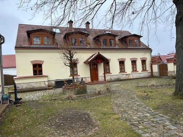 Das extravagante Künstlerhaus empfängt Euch großzügig auf 2 Etagen. 140m² außergewöhnliches Wohnen geben herrliche Einblicke in das kunst-afine Leben des Vermieters. Der liebevoll angelegte Garten mit ganzjährig nutzbarem Pool mit Gegenstromanlage lädt zum Relaxen und Verweilen ein. Nur 3 Gehminuten vom Bahnhof entfernt, seid Ihr in 25 min in der City von Berlin. Esszimmer,Wohnzimmer ,Arbeitszimmer und eine Wohnküche ,daß große Bad sowie 2 WC‘s runden den außergewöhnlichen Komfort ab