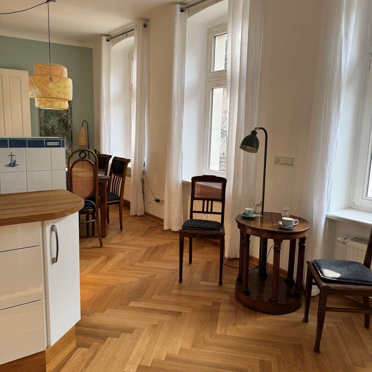 Welcome to this spacious and elegant private suite in the historic heart of Berlin, just a short walk from the city’s most important landmarks, excellent restaurants, and vibrant shopping areas. Enjoy complete privacy, peaceful garden views, quiet sleep, and refined modern comfort. Floor to ceiling windows fill the space with natural light, while a luxurious king size bedroom, a high-end kitchen, and a sleek bathroom with a rain shower and bathtub create a calm retreat in the middle of the city.