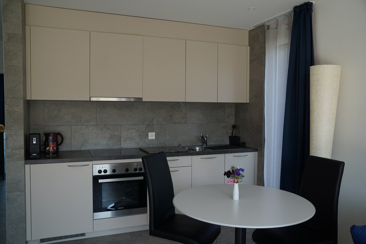 Ovaj moderan studio apartman se nalazi u blizini jezera (3 min.) i nudi čist i zemljan dizajn. Potpuno opremljena kuhinja, odvojeno kupatilo sa tuš-kabinom i udobna dnevna soba/trpezarija, kao i udoban bračni krevet, pozivaju vas da se u potpunosti opustite i uživate. Ermatingen je slikovito ribarsko selo sa prelepim pešačkim stazama, nekoliko restorana i biciklističkim putevima direktno ispred kuće. Nudimo bezbedno parkiranje u garaži za 1 automobil.