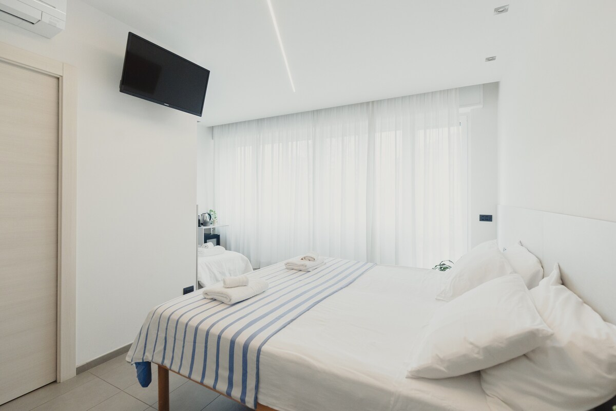 Soba za 2 osobe sa jednim bračnim krevetom (180x200 cm),kupatilom sa tušem, klima-uređajem, sefom, TV-om ravnog ekrana, BESPLATNIM filmovima na zahtjev, BESPLATNIM internetom i WI-FI MREŽOM. Otprilike 15 kvadratnih metara. Dvokrevetna soba (podrazumijevano) ili bračni kreveti (na zahtjev). Samo soba, doručak nije uključen