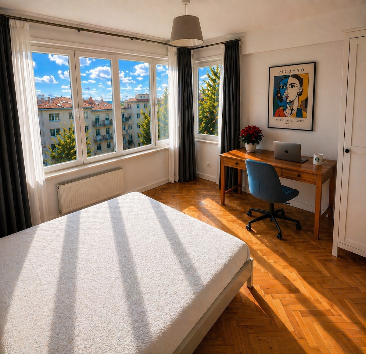 Dobro došli u svoj dom, daleko od doma! Ovaj svijetli i elegantni prostor savršen je za putnike koji traže udobnost i praktičnost. Nalazite se u centru grada, svega nekoliko minuta od najpopularnijih atrakcija, restorana i noćnog života. Opustite se u pažljivo uređenom enterijeru, uživajte u brzom Wi-Fi-ju i opustite se u udobnim sobama ispunjenim suncem. Bilo da ste ovdje zbog posla ili zabave, ovaj prostor nudi savršen spoj šarma i funkcionalnosti. Rezervišite sada i doživite smještaj koji djeluje jednako dobro kao što izgleda!