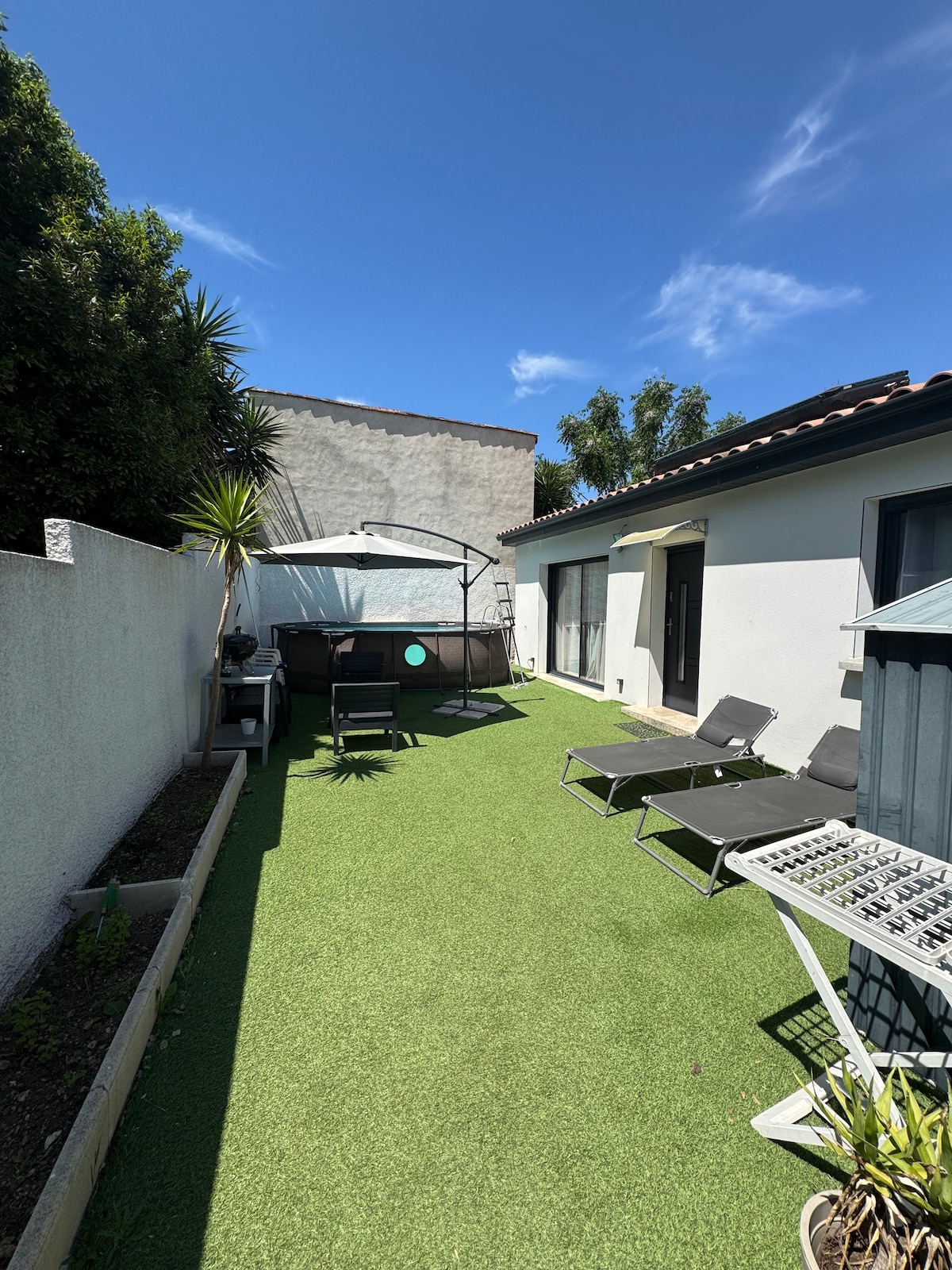 Pružamo vam smještaj u našem životnom prostoru, 30 m2, samo 15 minuta od prvih plaža, 15 minuta od Cap d 'Agde i 40 minuta od Monpeljea. Smještaj ima salon i kuhinju, spavaću sobu i kupatilo sa WC-om. Veliki spoljni prostor bez vize omogućiće vam da u potpunosti uživate u mediteranskoj klimi! Ugao u hladu će vam omogućiti da jedete, a sunčani kutak će koristiti ljubiteljima sunčanja! Dostupno je 1 parking mesto