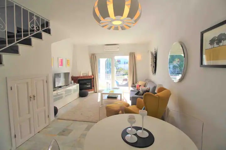Naša pametna i elegantna kuća u gradu okrenuta ka jugu udaljena je samo 5 minuta hoda od prelepe plaže u Mocar Plaji. Sa hladnim mermernim podovima, dnevni boravak/trpezarija ima ringlu za drvo i vrata za baštu. Postoji kuhinja dobre veličine sa Nespresso mašinom, mikrotalasnom rernom i mašinom za pranje veša. Obe spavaće sobe imaju vrata koja se otvaraju na privatne terase. WC šolja i garderoba u prizemlju su nedavno instalirani. Objekat ima privatni parking, klima-uređaj i komarce.