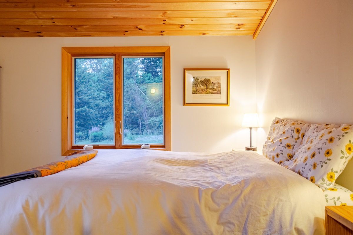 Prijava bez kontakta. Udobna gostinjska kuća, brvnara - studio; uživajte u zvucima potoka kroz prozor (pored kreveta). Pogled na veći potok ispod. „Brvnara“se nalazi na drveću i daje osećaj plutanja iznad potoka ispod. Unutrašnjost je uređena sa porodičnim nasleđem okupljenim iz cele zemlje. Ništa posebno, samo udoban i jednostavan odmor. 3,25 mi od grada. Izaberite jednu od raznovrsnih aktivnosti u gradu ili uskočite na obližnje staze. KUĆNI LJUBIMCI NIJESU DOZVOLJENI.