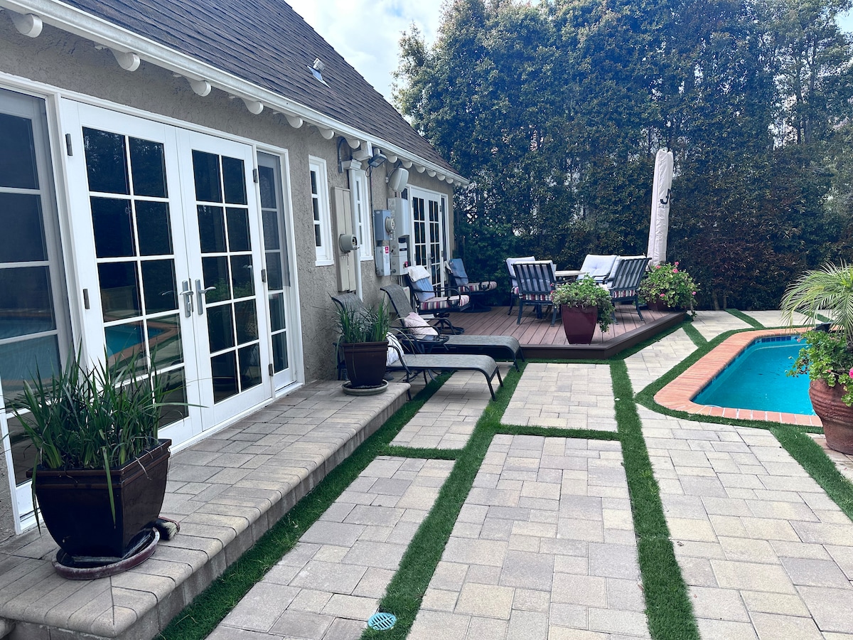 Doživite prelijepu privatnu gostinjsku kuću 400 SF sa modernim kupatilom sa luksuznim bračnim krevetom u Kaliforniji, udobnom sofom i velikim televizorom ravnog ekrana. Veliki frižider, mikrotalasna rerna, aparat za kafu i aparat za espreso Prošetajte 3 minuta do Muzejskog reda i Grova, 20 minuta do Beverli Hilsa. Upoznaćete i našeg ljubaznog zlatnog retrivera Miloua, koji voli da ga maze i uživa u boravku u zatvorenom prostoru. Savršeno utočište, zajedno sa namjenskim parking mjestom! 🏡