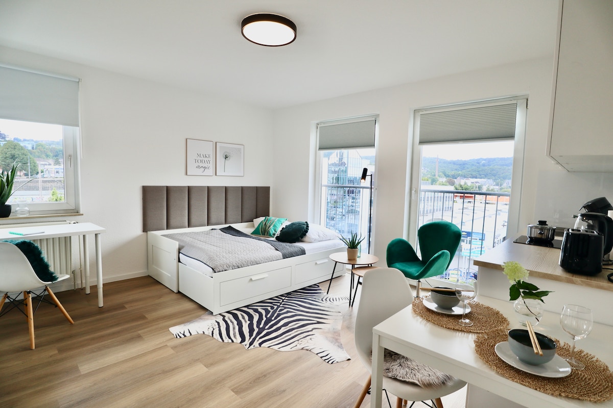 Uživajte u elegantnom doživljaju u ovom smeštaju koji se nalazi u centru grada u srcu Luisenviertel. Susedstvo, sa svojim barovima, kafićima i restoranima, jedno je od najljepših područja u Wuppertalu. Do prostranog bračnog kreveta možete da dođete preko malog stepeništa (visina plafona ovde je samo 1,60m). Kuhinja je opremljena mikrotalasnom rernom, šporetom, frižiderom i aparatom za kafu. Postoji radni prostor u dnevnoj sobi, kauču i TV-u (samo Netflix - nema kablovske veze).