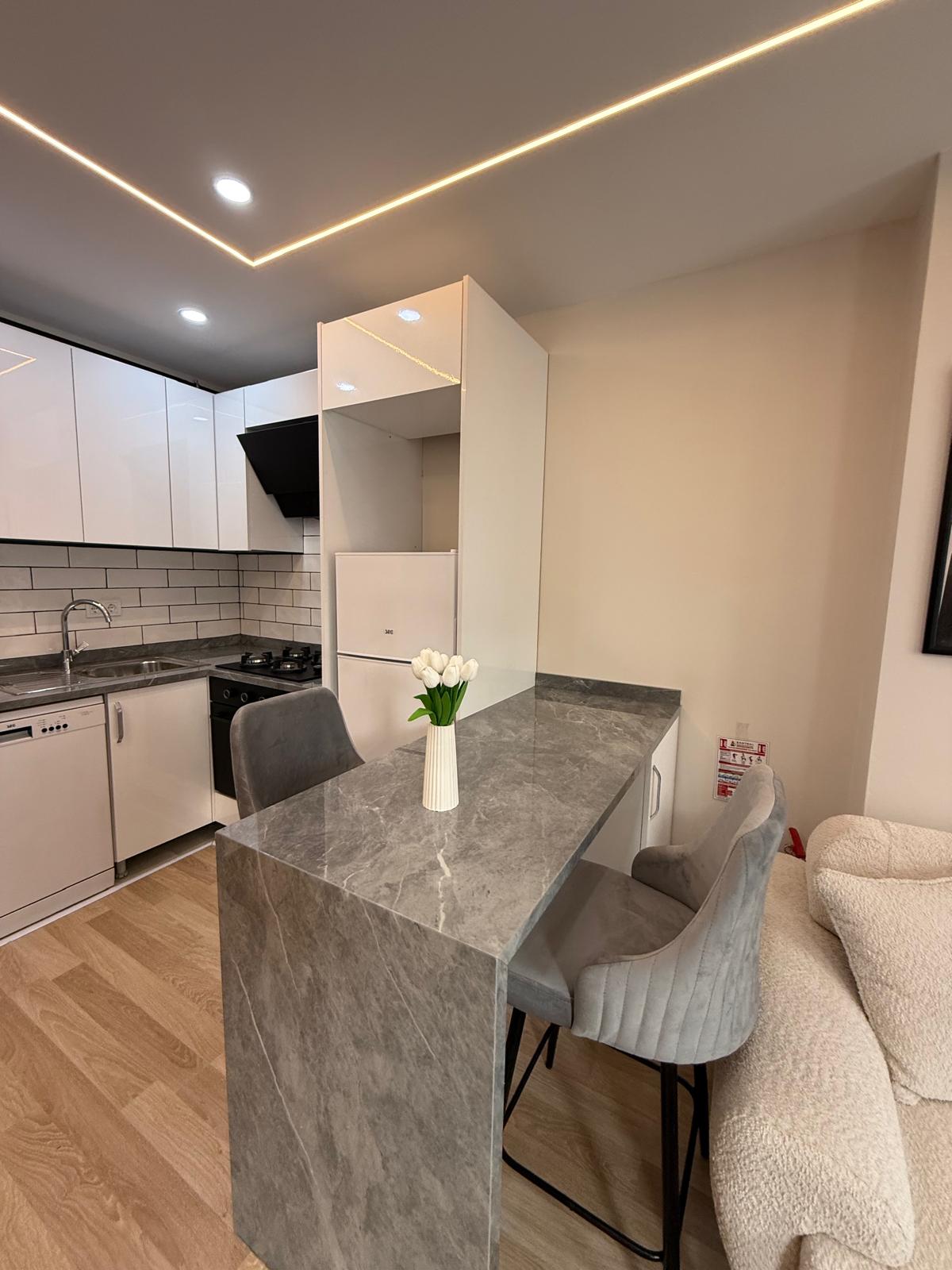 Ovaj elegantni smještaj je savršen za par za dobar prostor i elegantan dušek Sa kompletnom kuhinjom opremljenom za kraći i duži boravak u modernom porodičnom stambenom kompleksu, postoji bazen pokriven ispod zgrade tokom cijele godine, sportski klub, tursko kupatilo i sto za stoni tenis, a parking garaža za zgradu je bezbjedna i čuva se non-stop u blizini stanice metroa bos ispod zgrade nalazi se supermarket Nakon šetnje stepenicama od pijaca i restorana, mirno područje za ljubitelje mira i udobnosti