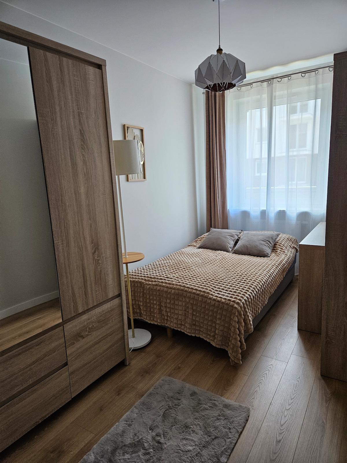 Nudimo veliki apartman (65m) sa 2 spavaće sobe sa bračnim krevetima, dnevni boravak sa 43" TV. Kuhinja je potpuno opremljena, uključujući kafu i čaj. U kupatilu se nalaze peškiri, fen za kosu i set kozmetike. Velika terasa sa pogledom na baštu. 100m do prodavnice, 300m do Lidla i Biedronke. Najbliže atrakcije: Dramsko pozorište 1,4 km Vodeni park Tropikana 1,5 km Gradska kuća 1,6 km Galerija Arsenal 1,6 km Palata Hasbach 1,6 km Podlaska filharmonija 1,6 km Palata Branicki 1,7 km