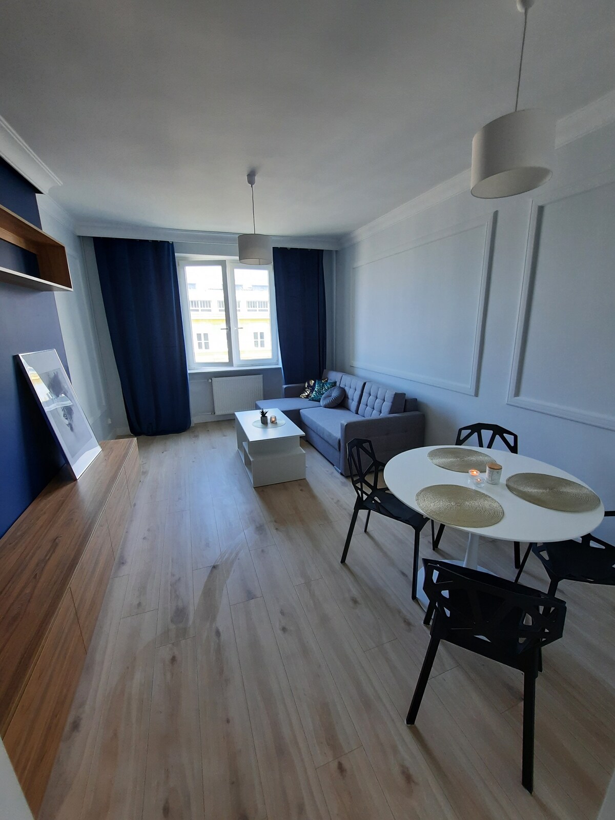 Moderan stan u centru Białystoka. Stan za 4 osobe sa spavaćom sobom, dnevnim boravkom sa sofom na razvlačenje i 40-inčnim Smart TV-om. Tu je privatna garderoba, potpuno opremljena kuhinja, kupatilo sa mašinom za pranje veša i tuš kabina bez stepenika. Balkon s pogledom na centar grada. Brza Wi-Fi mreža i parking mjesto u podzemnoj garaži. Odlično za poslovne i turističke boravke.