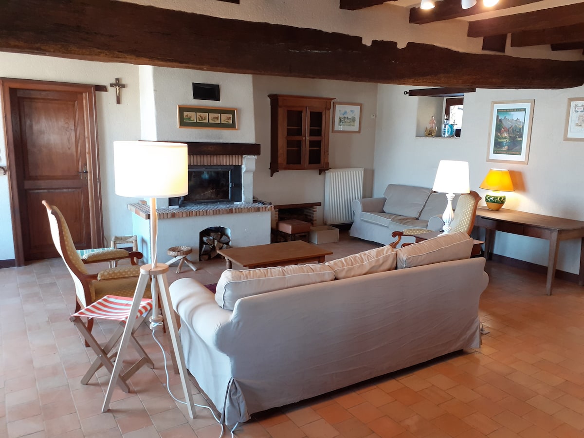 Chaleureux et convivial dans un cadre bucolique. Chambres confortables, séjour spacieux, grande cuisine bien équipée, le jardin, son plan d'eau, terrasse, aire de jeu, barbecue... et la grange avec ping pong, table de banquet... Idéal pour vos événements familiaux, retrouvailles entre amis, déplacement professionnel... En option une 6ème chambre double et panier petit déjeuner 8€/personne à réserver 48h avant. Nous sommes à votre disposition pour toute demande particulière.