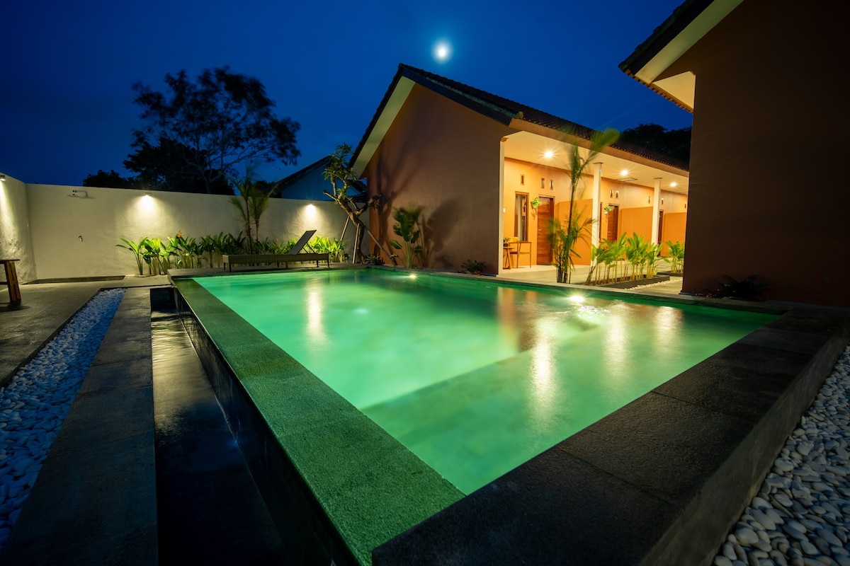 Otkrijte moderan i udoban boravak u mirnom okruženju sa prostranim sobama sa privatnim terasama i osvježavajućim bazenom. Savršena lokacija samo nekoliko minuta od najpoznatijih destinacija na Baliju - plaža Melasti i kulturnog parka GWK. Uživajte u besplatnom brzom Wi-Fi-ju, 24-satnom CCTV nadzoru , kako biste se osjećali bezbjedno i opušteno. Bilo da ste ovdje zbog odmora ili dužeg boravka, voljeli bismo da vas ugostimo!