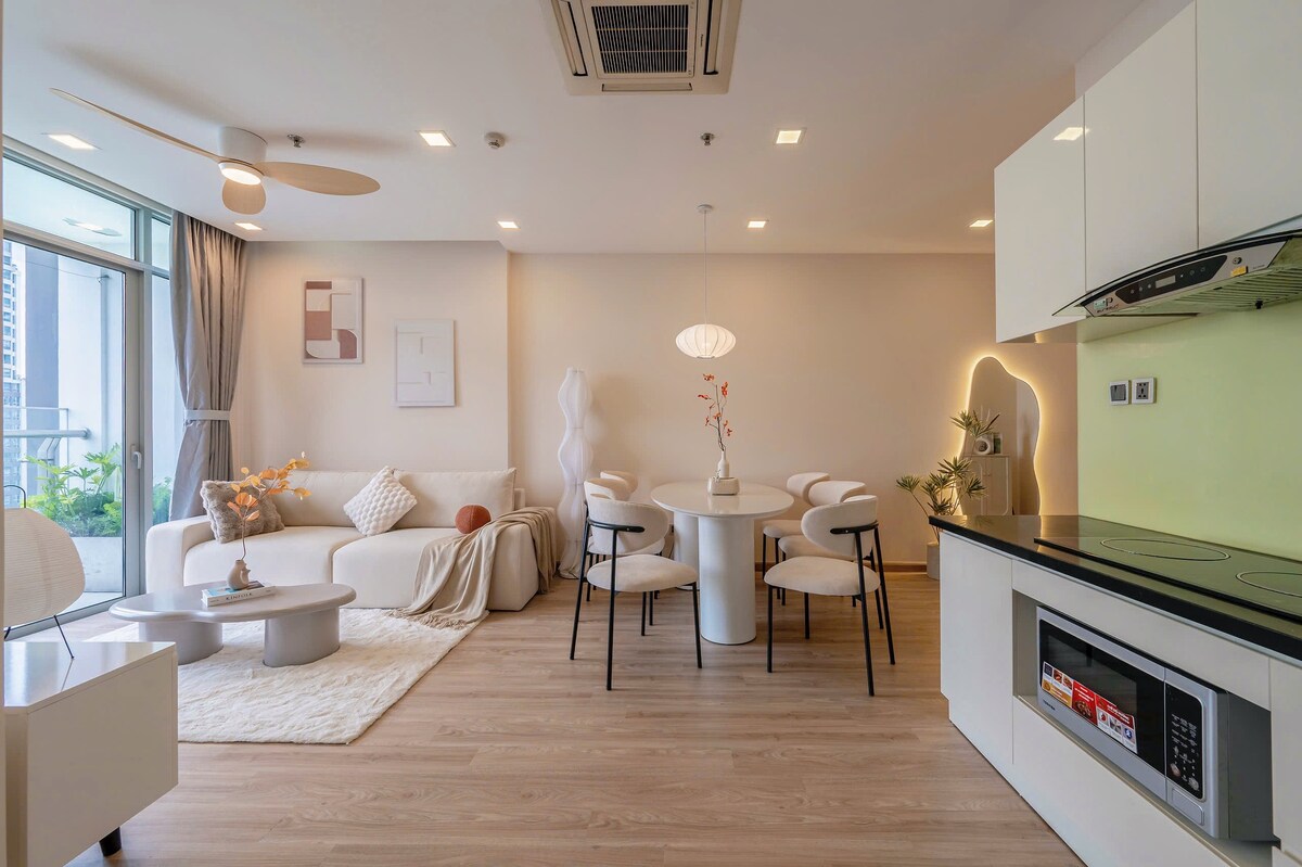🌟 Smješten u četvrti Quan2 Thao Dien, naš stan je modernog i elegantnog dizajna i nudi savršen prostor za opuštanje i udobnost. Posebnosti 🏡 objekta • Prostran i udoban prostor: Ima 2 spavaće sobe i 2 kupatila, tako da možete da se opustite i osjećate prijatno sa porodicom i prijateljima. • Potpuno opremljena kuhinja: Uz sav potreban pribor za kuvanje, možete sami da kuvate i uživate u još posebnom obroku. • Novi sadržaji: Potpuno opremljen klima-uređajem, Wi-Fi mrežom, mašinom za pranje veša itd., kako bi vaš boravak bio što praktičniji i prijatniji. • Ako ostanete duže od 7 noćenja, promijenićemo posteljinu i peškire. Komercijalni prostori u 🌆 okolini • Vincom mega Mall je odmah pored, pogodan za kupovinu i objedovanje! Starbaks, Mekdonalds, K-Market, Vinmart i mnogi drugi brendovi i restorani olakšavaju pristup svemu što vam je potrebno.