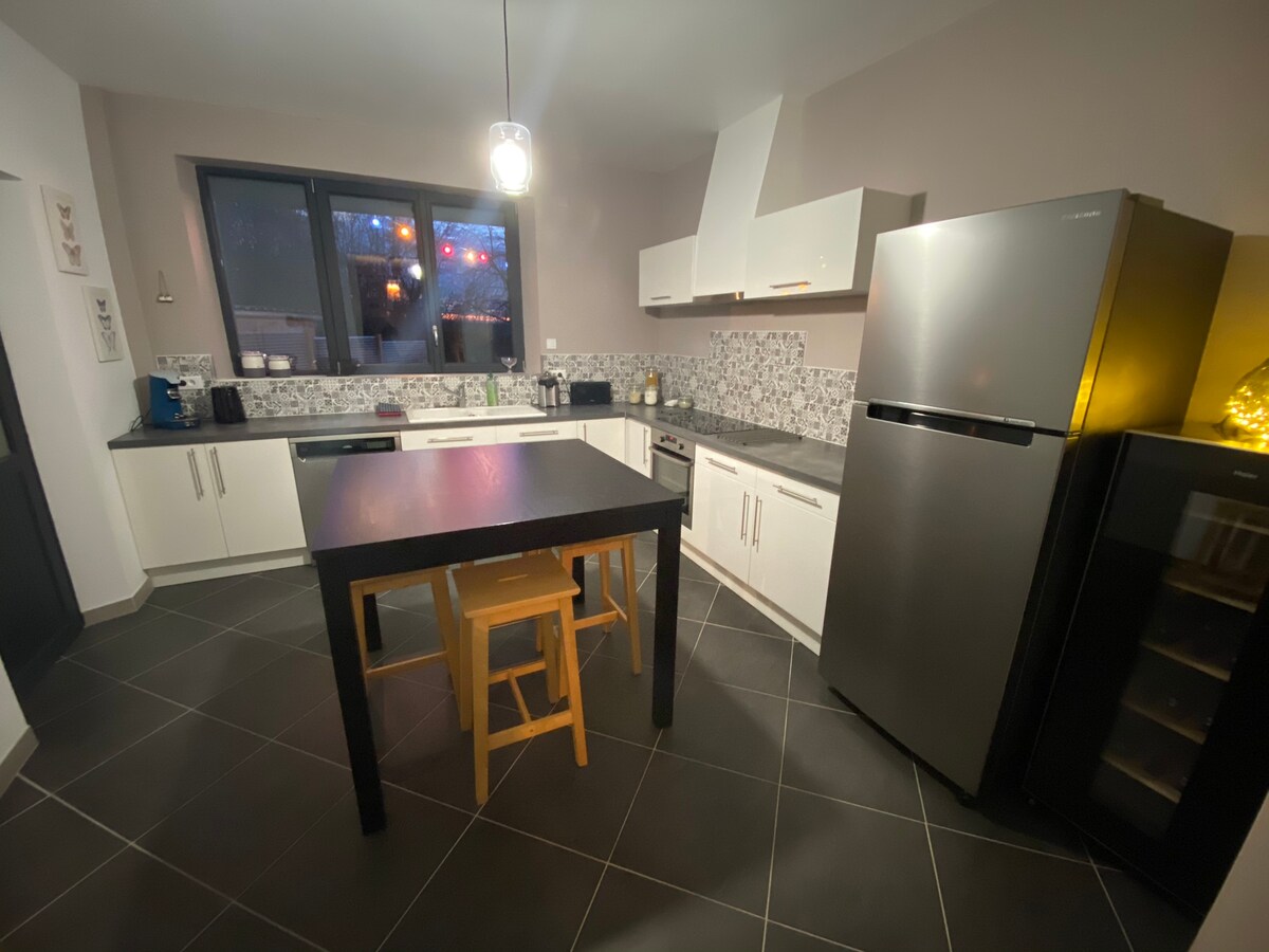 Magnifique maison cosy en plein centre d'Hautvillers, entièrement rénovée et classée Patrimoine Mondial de l'Unesco. Accessible pour 2 nuits ou plus, en famille ou entre amis pour vous détendre ou tout simplement profiter de la région. Elle possède une chambre avec de grandes baies vitrées accédant à une terrasse qui quant à elle donne une magnifique vue sur les vignes de Champagne et d' Epernay. C'est une maison moderne tout équipée avec rez-de-chaussée et deux étages.