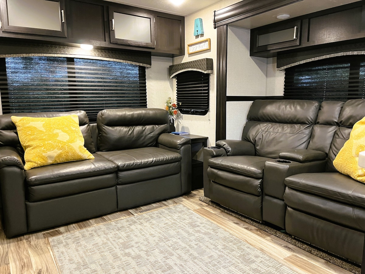 Novi luksuzni trener za kamp prikolice, sa tri kreveta i jednim bračnim krevetom na sprat. U srcu brdske zemlje u blizini jezera Kenjon, rijeke Gvadalupe, rijeke Blanko, zemlje vina, državnog parka Gvadalupe i državnog parka Blanko. Ima mnogo mesta za cijelu porodicu ili samo romantični odmor. Odličan mali bungalov za djecu sa TV-om, kao i druga soba sa TV-om i kaučem, spoljašnji prostor za zabavu sa TV-om i stereo uređajem za surround zvuk. Ovaj luksuzni trener ima toliko toga da ponudi. Ukupno 5 televizora