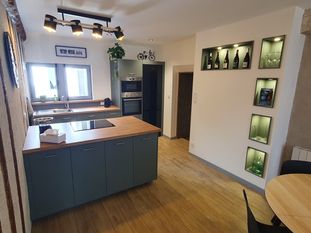 Želimo vam dobrodošlicu na našu dvesta godina staru farmu! Idealno smješteni u šarmantnom selu u dolini Loare, uživaćete u boravku u našem novom preuređenom udobnom stanu (dnevni boravak niz stepenice i spavaće sobe/kuhinja na prvom spratu). Imaćete ekskluzivnu upotrebu toplog bazena, kuće i njenog prelijepog i cvjetnog dvorišta. Zagrejani bazen je dostupan od aprila do oktobra