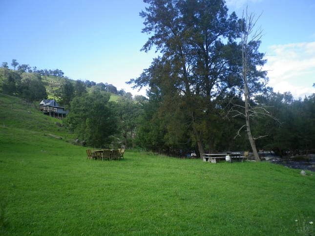 The Award-winning Eco Lodge is set in a regenerative farm, in the MEGALONG Valley in the Blue Mountains. We breed horses, cattle and grow lavender and Rosemary. The lodge over looks the beautiful Cox’s River. Your surrounded by grasslands, the beautiful Coxs River - this is the Australian bush at it's best, Kangaroos, Wombats, Echidna and even Platypus. The Eco Lodge is totally off the grid and is a wonderful playground. Perfect for a family, friends or a totally private retreat.