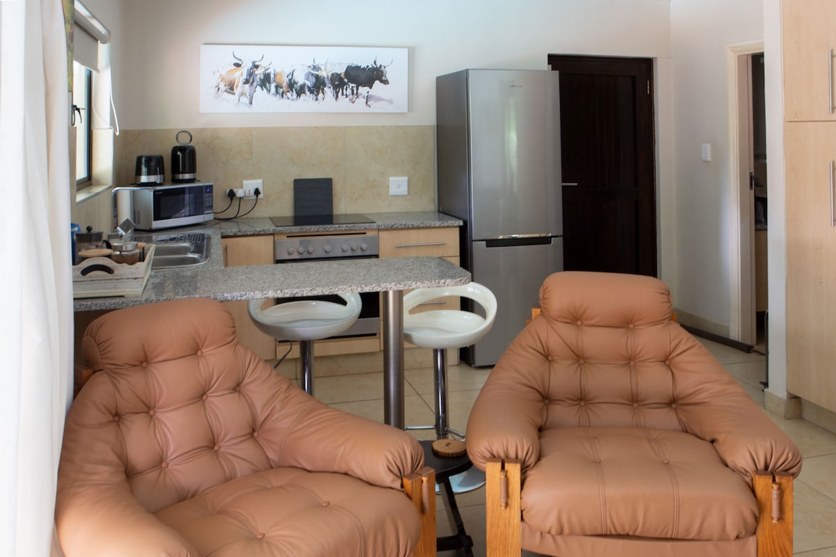 Naš prelijepi studio za samostalno posluživanje hrane nalazi se na našem imanju i vrlo je privatan, udoban sa zadivljujućim pogledom. Ima kompletan DSTV, Wi-Fi, Aircon, bezbjedan tajni parking, bazen i privatni ulaz. U blizini tržnih centara, restorana, plaža i udaljen je 15 minuta od Međunarodnog aerodroma King Šaka. Obezbjeđujemo čaj,kafu,mlijeko, jogurt i musli. Kuhinja ima mini rernu, mikrotalasnu rernu, kuvalo za vodu,frižider, toster. Možemo da ugostimo samo malo DIJETE, A NE treću ODRASLU OSOBU na malom krevetu!