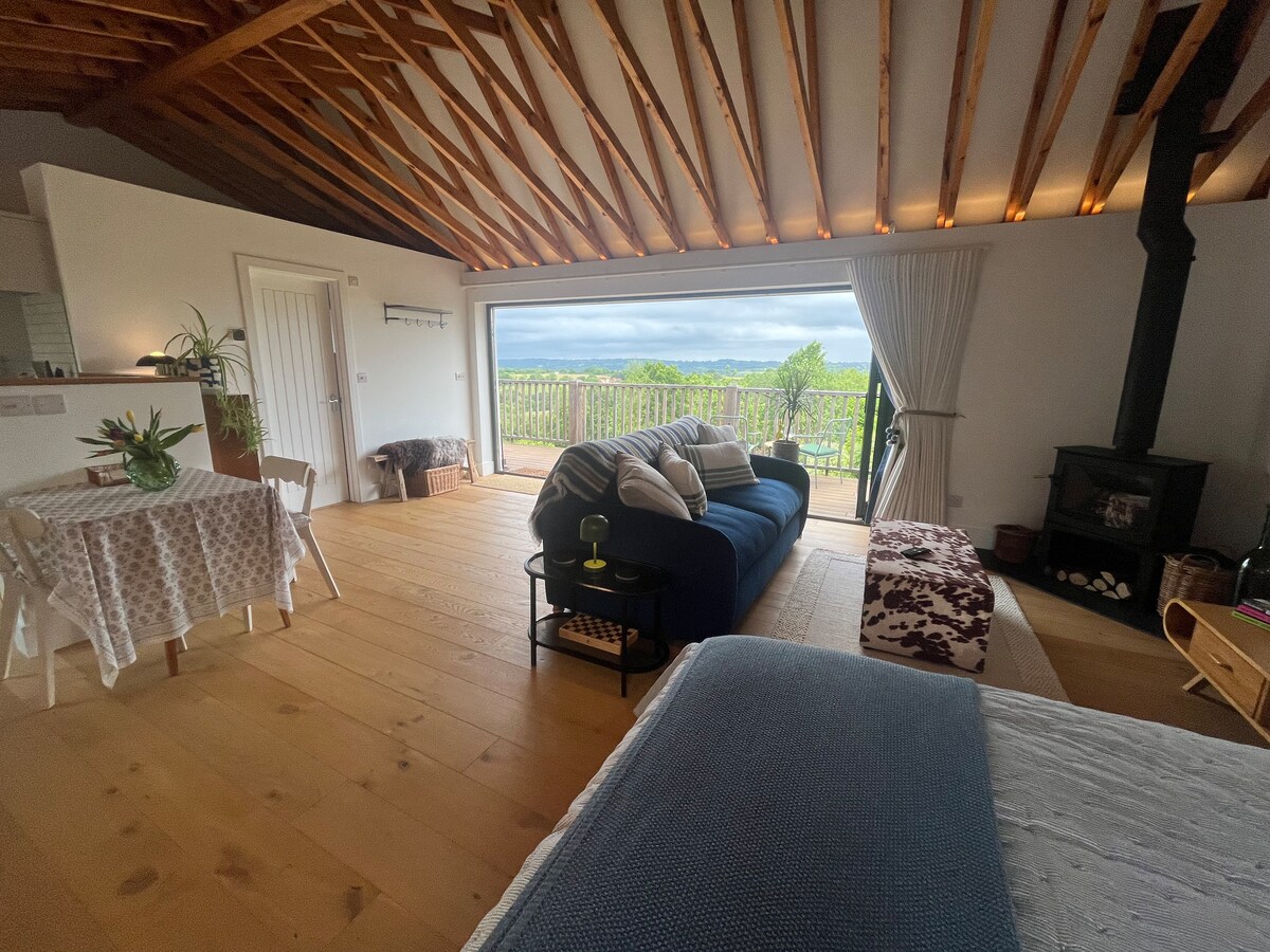 Oliveswood barn a self contained contemporary Architect designed Barn is a luxurious couples retreat, a detached structure surrounded by beautiful AONB countryside with outstanding views. Dog friendly. Close to many famous houses and gardens ,Sissinghurst Castle, Great Dixter, Chartwell, Batemans and Scotney Castle. The Spa town of Royal Tunbridge Wells is a 20 minute drive away. Wadhurst our nearest village has 2 small supermarkets, great butcher, deli, 2 pubs and takeaways.