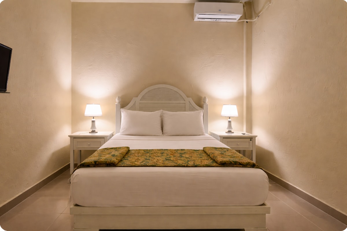Habitación acogedora y tranquila ubicada en nuestro aparta-hotel frente a la playa de Juan Dolio, diseñada para un descanso relajante. Cuenta con aire acondicionado y WiFi, ofreciendo un ambiente cómodo y funcional. Ideal para familias, parejas o grupos de amigos que buscan privacidad, confort y una ubicación privilegiada frente al mar, con fácil acceso a la playa y espacios pensados para disfrutar una estadía agradable y sin complicaciones.