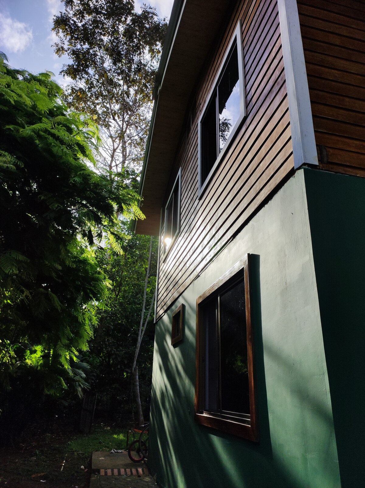 Ovaj moderni mali dom nalazi se u prelepom okruženju džungle. Uživajte u majmunima i pticama iz udobnosti svog luksuznog bračnog kreveta, kauča ili dva odvojena kreveta u našem zasvođenom prostoru za gledanje i spavanje. Pobegnite od vrućine i buba uz naš klimatizovani unutrašnji prostor. Zatvorena kuhinja sa aparatima za pripremu skoro svakog obroka. I odlično kupatilo sa privatnim tušem na otvorenom da biste zaista uživali u prirodi. Imamo igre, knjige i pametni TV da biste bili zauzeti tokom kišnih dana. Uživajte!