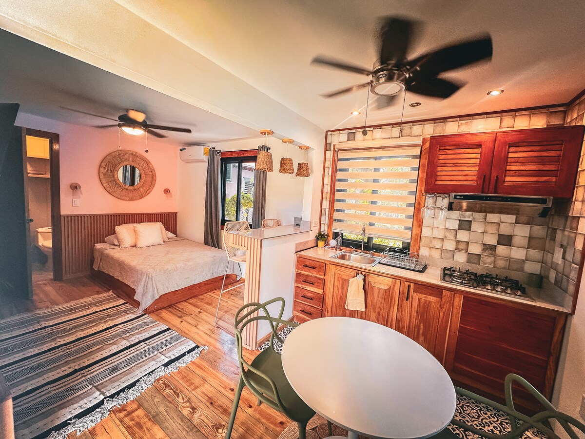 Bez naknada za usluge! Opustite se na našem mirnom odmoru na ostrvu koji se nalazi odmah iznad Kariba. Smješten na brdu s pogledom na okean, gdje ćete spavati uz zvukove džungle i talasa. Apartman ima bračni krevet, privatno kupatilo i čajnu kuhinju na otvorenom. Naša lokacija vas stavlja usred sopstvene avanture. Prošetajte kroz džunglu do valovitih plaža ili Stare obale. Udaljeni smo 5 minuta vožnje brodom do restorana i klubova Bokas Tauna. *Naš ceo smeštaj je ZA NEPUŠAČE.*