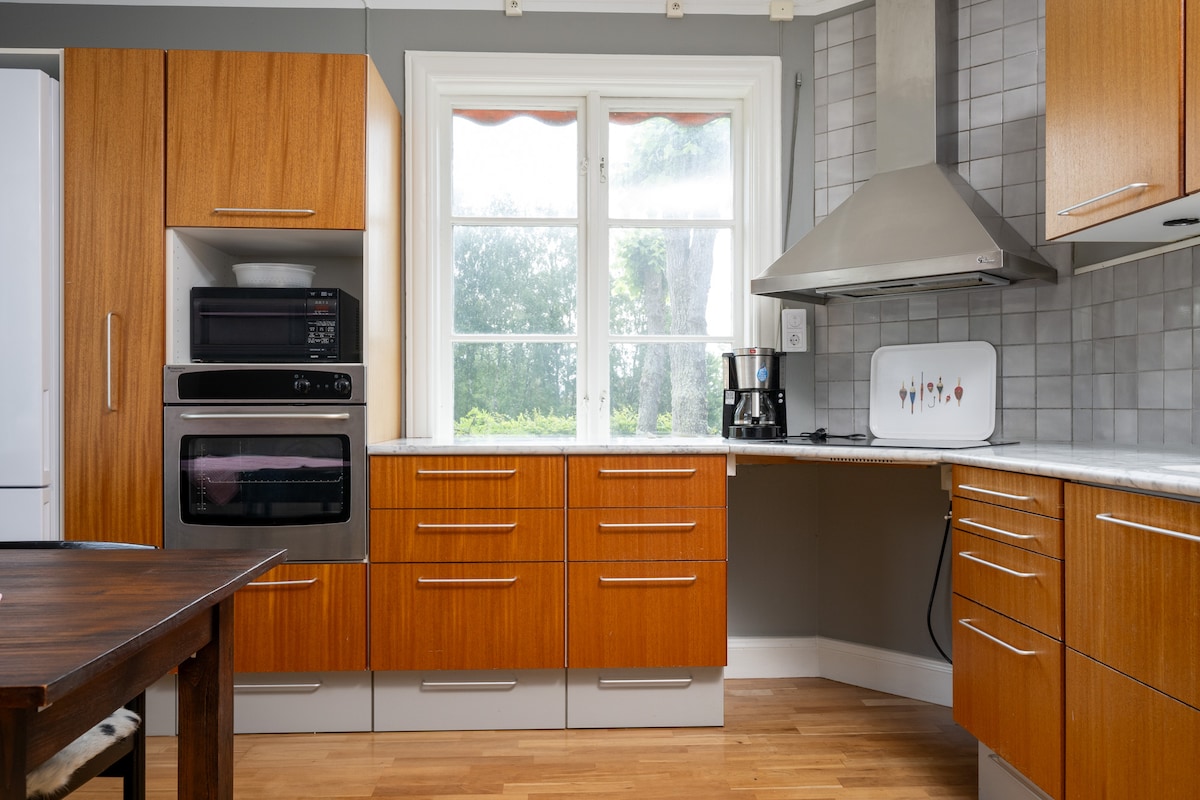 Opustite se u našoj kući iz 1850. godine, pogodnoj za porodice, i osetite spokoj. Divna bašta za boravak. Postoje velike javne zelene površine oko 100 metara od kuće sa igralištem u prirodi. (Župna kuća) Ili rezervišite pekaru za prijatno veče sa porodicom i prijateljima. Oko 5 minuta hoda do lijepog pogleda na selo. Roštilj/kafić Do prostora za kupanje i rezervata prirode možete lako stići automobilom/biciklom. U blizini Hook's spa centra i terena za golf. 20 minuta do Jenšepinga, Huskvarne, Vagerida i Nea