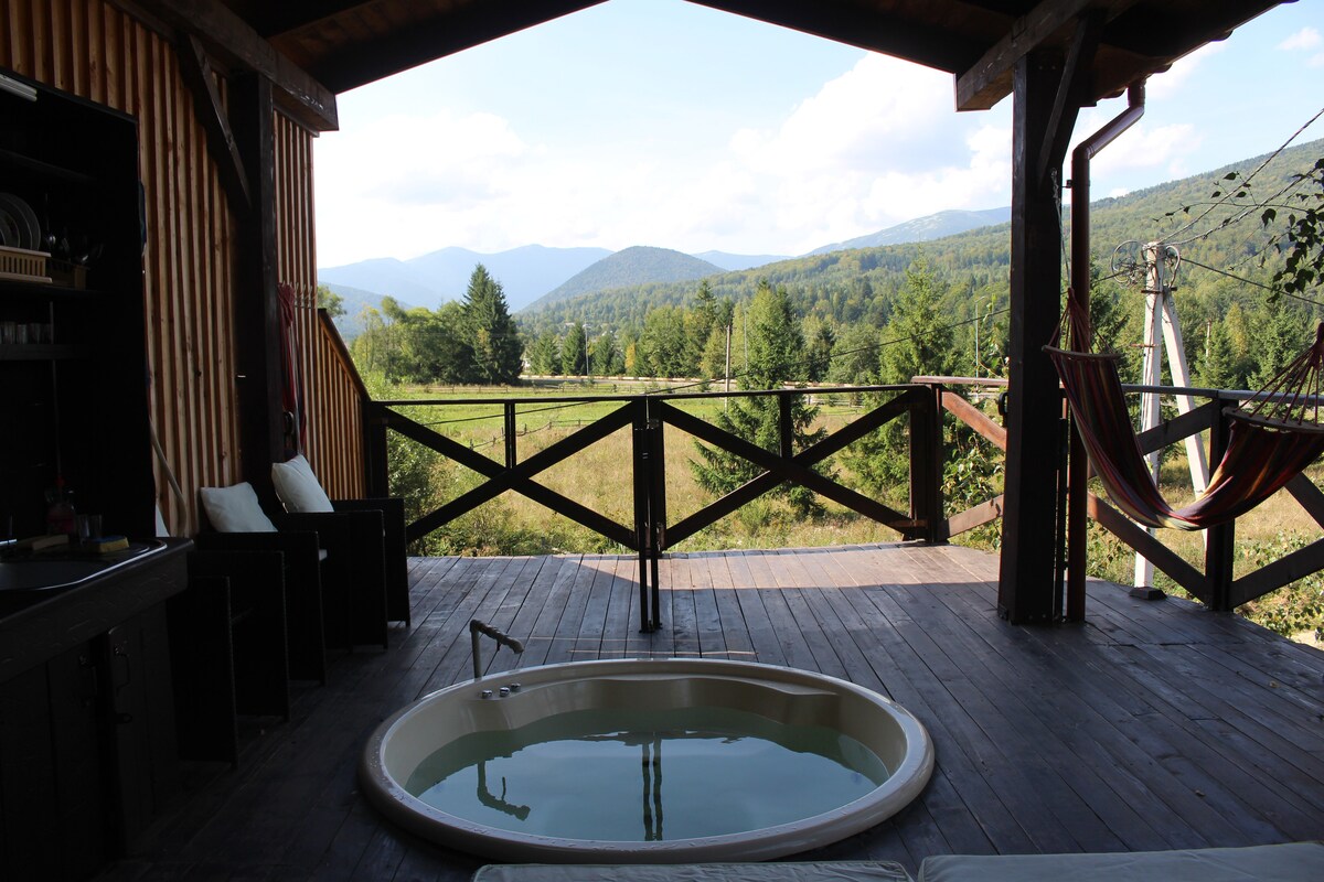 Harmony Manor – Rest in the Heart of the Carpathians Pozivamo vas u Harmony Manor, prijatan kutak mira i prirode, koji se nalazi u živopisnom karpatskom selu Guta. Ovdje možete da osjetite pravu harmoniju uma i tijela dok uživate u tišini planina, čistom vazduhu. Na raspolaganju vam je prostrana kuća sa svime što vam je potrebno, rezervoar na drva, sjenica, roštilj i staze za šetnju i planinarenje. „Harmonija” je savršeno mjesto za porodični odmor, romantična putovanja ili opuštanje s prijateljima.