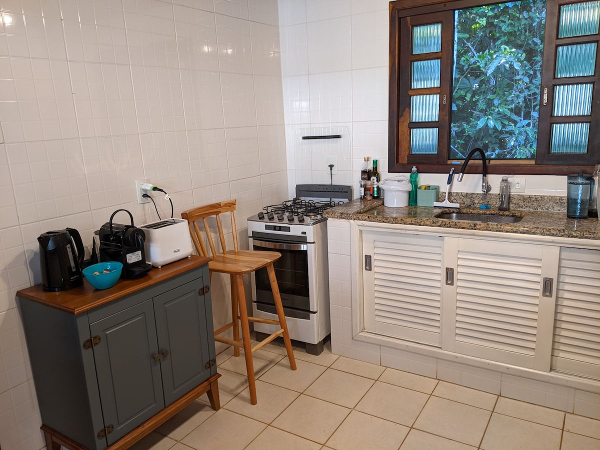 Doživite jedinstveno iskustvo usred Atlantske šume 350 metara od mora! Kuća je u zatvorenom stambenom kompleksu sa 24-časovnim obezbeđenjem. Nema autoputa između kuće i plaže. Kuća je tiha i u prizemlju, ima tri spavaće sobe, tri kupatila, trpezariju i TV sobu, kuhinju i prostor za roštilj, tuš sa pogledom na prirodu, prihvatamo vašeg kućnog ljubimca! Plaža je za sve! Nudimo opremu za plažu! Udaljen je 9 km od istorijskog centra Sao Sebastijaoa.