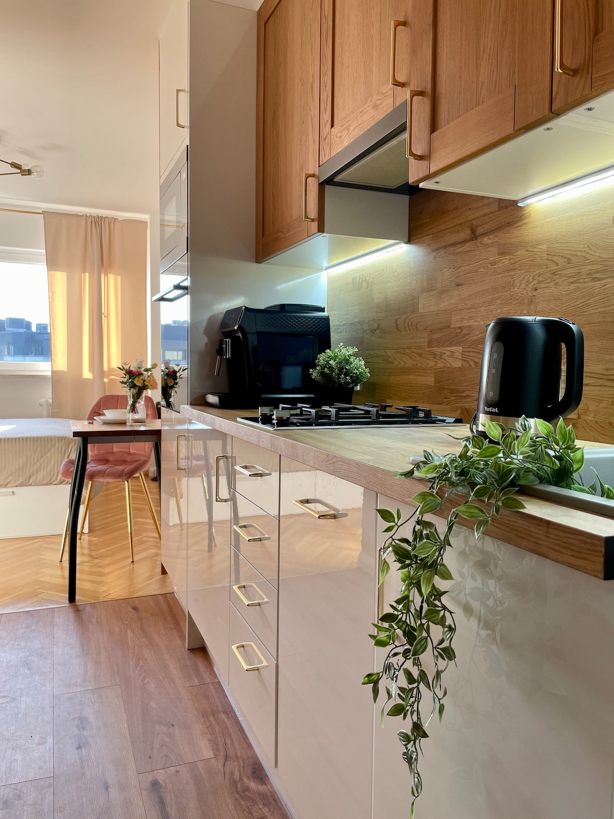 Apartment, 21m2, studio type which is located on the 15th floor of a building with security. The placement of the study will for sure add uniqueness to the stay. Panoramic windows allow you to admire the panorama of the city center of Warsaw. We offer self check-in and check-out, through key locker / padlock. The apartment is fully equipped with all necessary things that are needed to live.