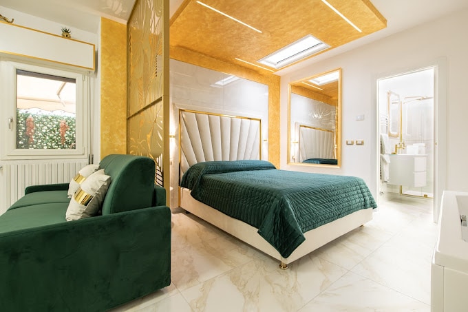 FASHION APARTMENT GOLD costruito nel 2023 nel cuore di Bologna vicino al polo Fiera e al centro della città, è perfetta per chi cerca una location luxury moderna. L'appartamento è caratterizzato da finiture Oro e marmo bianco, atmosfera romantica adatta alle coppie con bellissima vasca idromassaggio con cromoterapia led. Garage auto incluso sotto la struttura e piccola Area lounge esterna per caffè e aperitivi. Posizione strategica con tutti i servizi:Fermate BUS e TRAM di fronte. Self check-in.