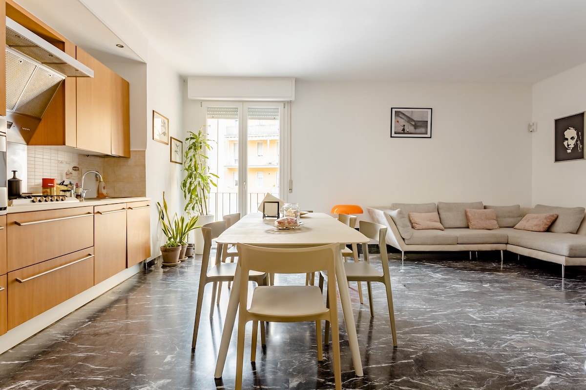 Moj stan je renoviran nešto manje od godinu dana,na raspolaganju su vam tri velike dvokrevetne sobe,jedna može postati četvorokrevetna, druga dva su dvokrevetna,jedna sa privatnim kupatilom u sobi. Lokacija stana je odlična, udaljeni smo 10 minuta hoda od trga Piazza Maggiore, 12 minuta od Dve kule. Iza kuće su dva velika parka za mališane. Restorani,poslastičarnice i bistroi su dostupni za nekoliko minuta!!Mambo je iza kuće!!!