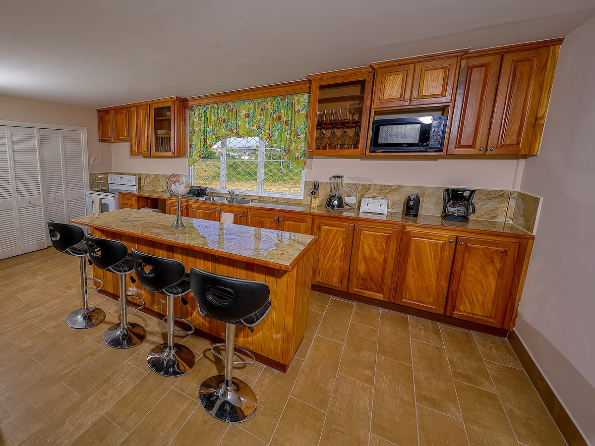 Kombinujući luksuz i udobnost, svi turisti sanjaju, romantični odmor za parove ili idealan prostor za rad daleko od kuće. Klizna staklena vrata otvorenog tlocrta od poda do plafona koja se otvaraju na omotani balkon, uzdižu boravak na otvorenom na potpuno novi nivo. Divite se zadivljujućem pogledu na Karipsko more i greben Buku ili pogledajte krošnje krošnji drveća i posmatrajte egzotične tropske ptice kako lete. Mirno, opušteno i inspirativno. Savremena udobnost - bezvremenski karipski šarm.