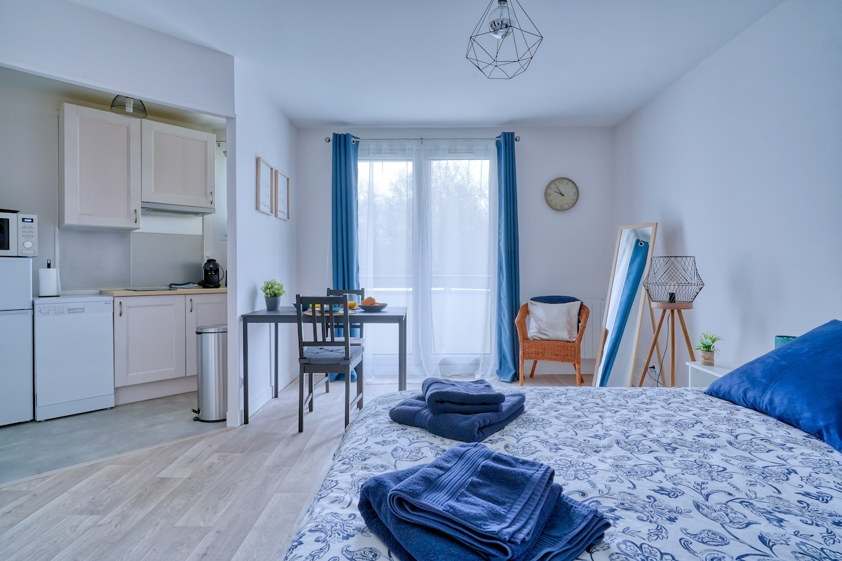 ✨ Looking for a peaceful haven in the city? Settle into this elegant studio in Évry-Courcouronnes, located in a quiet and green neighborhood. Designed by an interior architect, it offers all the comfort you need for an enjoyable stay, whether you're traveling for business or leisure. Enjoy the balcony with an unobstructed view of the residence's green spaces and savor a moment of relaxation in complete tranquility. 🌿 Feel free to contact us to plan your stay.
