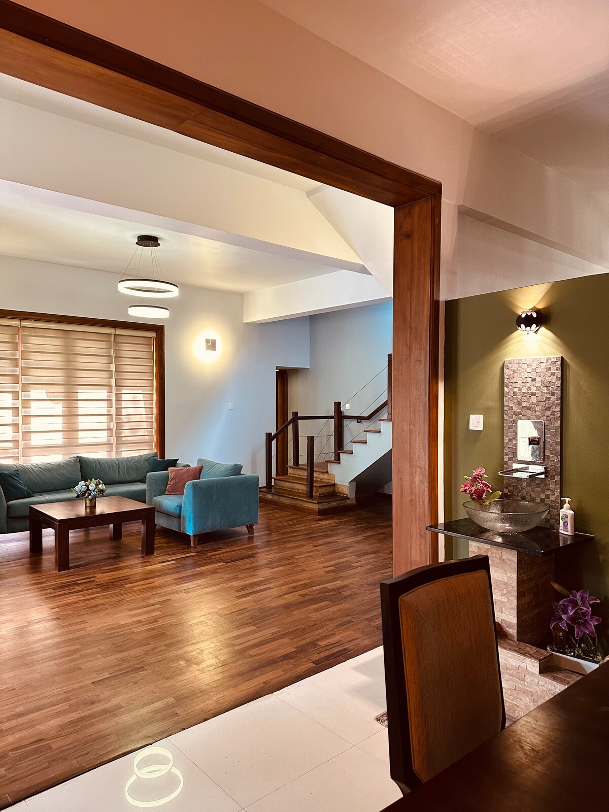 Enjoy a stylish our house with stunning lake views from the master bedroom and lounging areas, offering the perfect blend of comfort and convenience. Located in a peaceful surrounding features spacious living areas and modern amenities, all tastefully decorated for a welcoming atmosphere. Whether you’re here for business or leisure, you’ll find everything you need for a relaxing getaway. your stay will be completely undisturbed, allowing you to fully unwind and enjoy the beautiful surroundings.