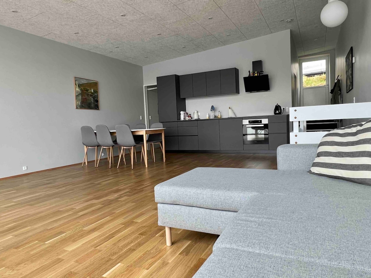 This is the perfect base for exploring the northern islands . This 50 m^2 apartment has a livingroom with a kitchen, two bedrooms and a small bathroom. There is a balcony to the seaside. You can enjoy the nature, the ocean and the mountains. Downstairs there is a washing machine, a dryer and a freezer. (Turn it on) The apartment is located outside the town of Klaksvík about 5 km from centrum, in quiet and idyllic environment. If you open the windows, you can hear the nearby creek and the ocean.
