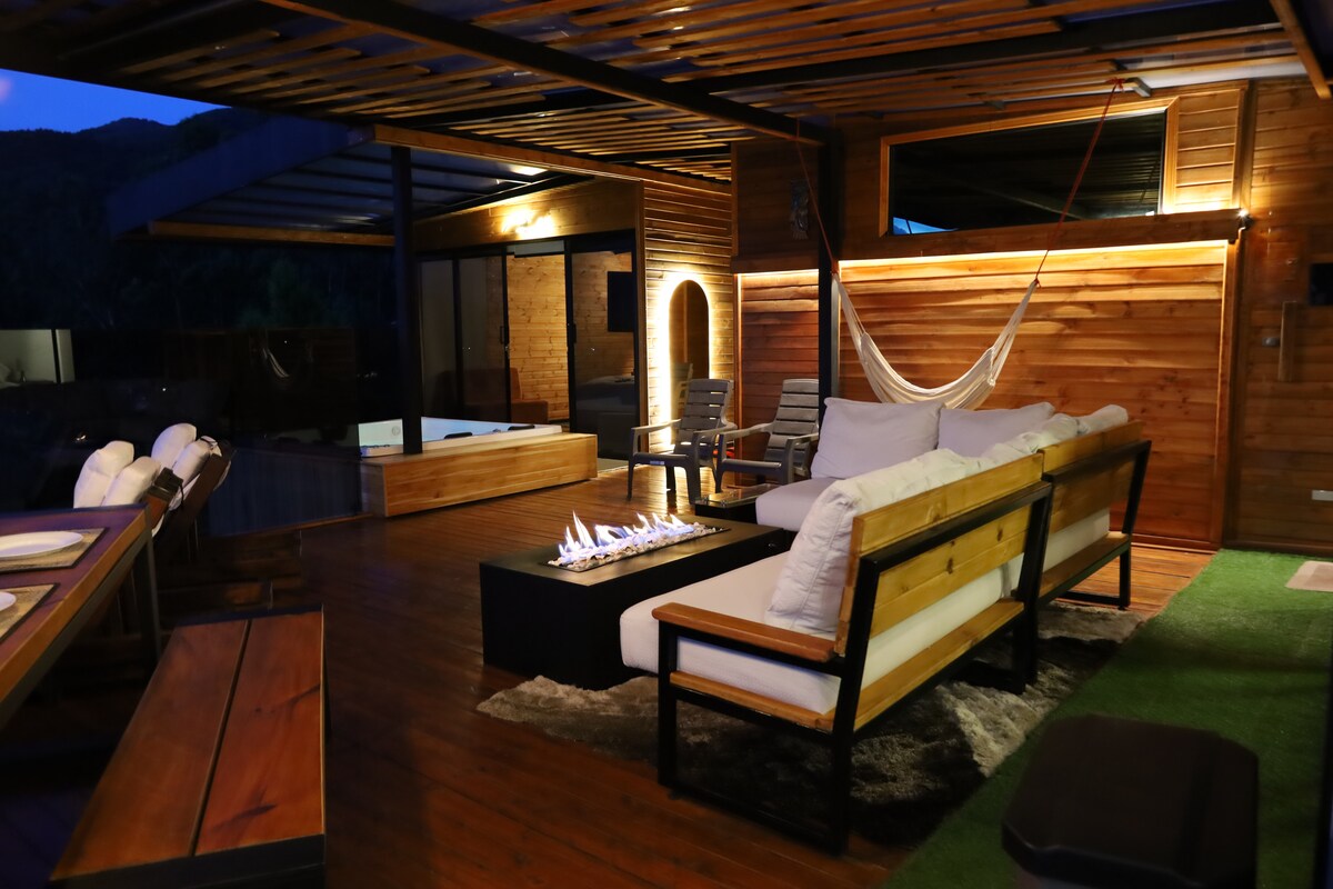 Discover your ideal retreat in our Scandinavian-style cabin, crafted entirely from warm Canadian pine and perched high on the mountain with privileged panoramic views of Lake Sochagota. Just minutes from the hotel district, you’ll enjoy the peace of the forest without sacrificing the convenience of nearby restaurants, cafés, and outdoor activities. Ideal for couples or families looking to unplug, reconnect with nature, and experience authentic Paipa.
