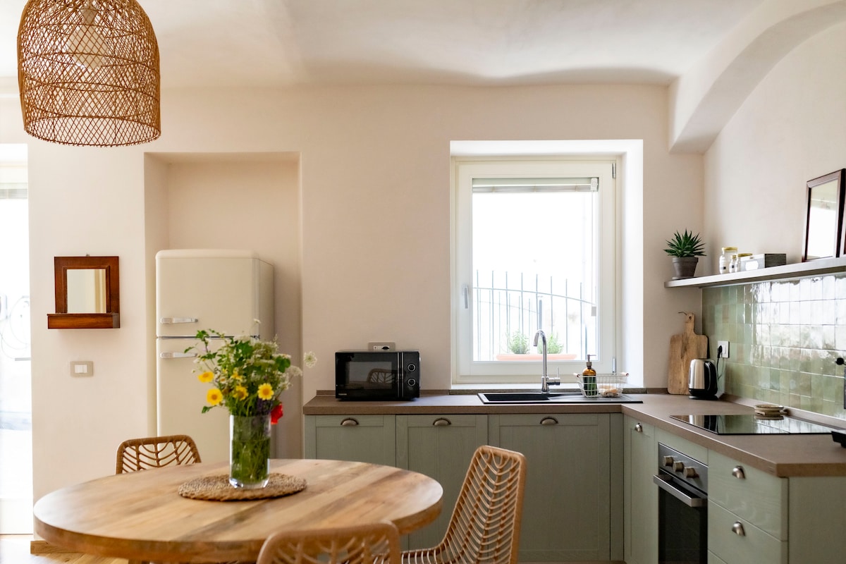 Stan u novouređenoj kući iz 17. veka sa pogledom na dvorac Serralunga d'Alba i okolne vinograde, u kojima možete uživati iz bilo koje sobe ili sa malog balkona koji pripada stanu. Pogodno za romantični boravak (nema drugih gostiju u komšiluku), degustaciju vina (čuveni vinogradi i vinarije Barolo su svuda) ili porodični boravak, koristeći potpuno opremljenu kuhinju.