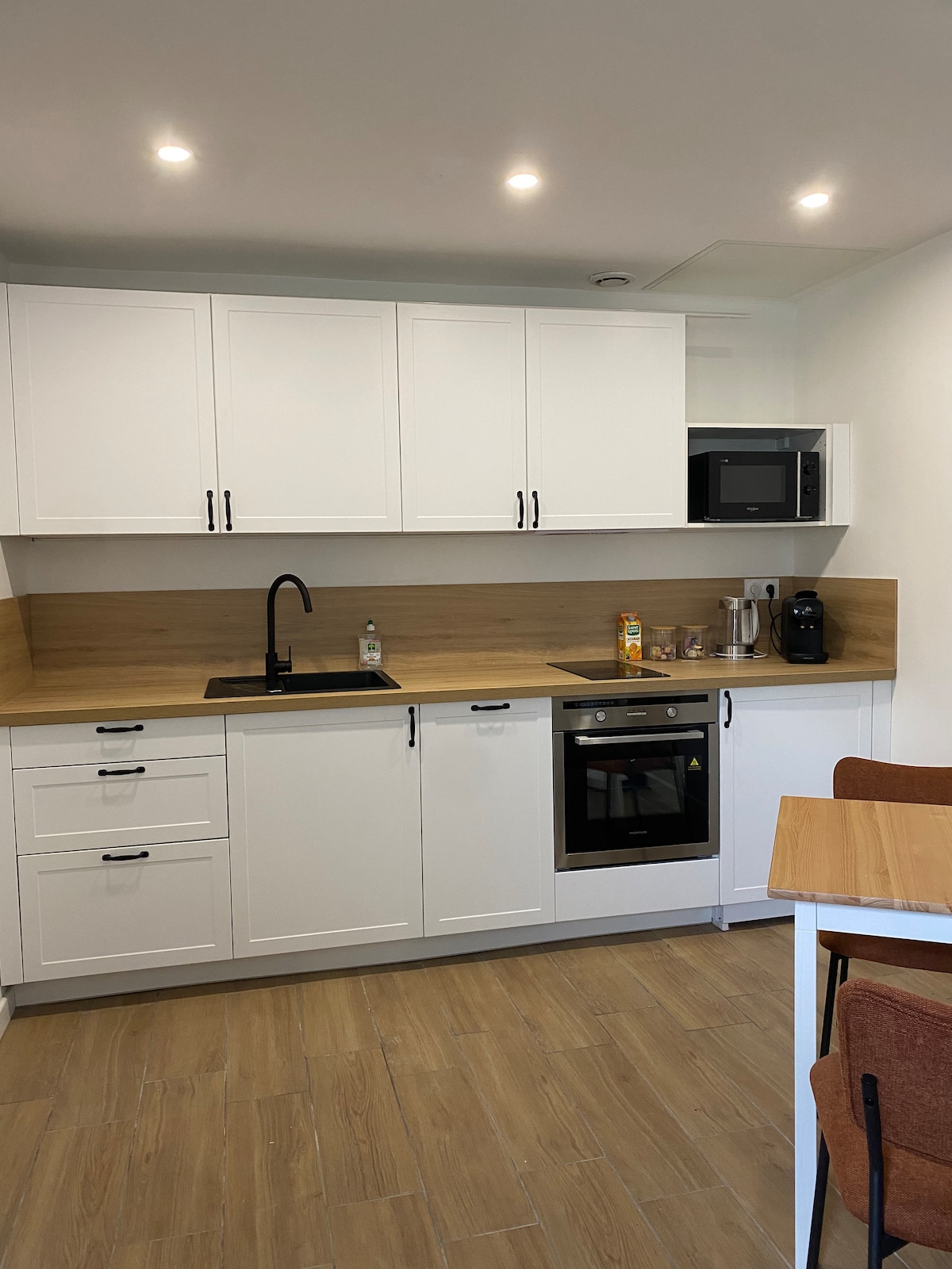 Located steps from the Château in a quiet alley in the heart of the city, the Appartement des Ducs welcomes you for a relaxing stay with its modern decor and amenities, as well as its magnificent bathroom (double bathtub and large shower). Completely renovated in 2022, this elegant and functional 31m² ground-floor apartment will be entirely yours. Close to public transportation (train station, tram) and Nantes' attractions, its location is ideal. Linens and cleaning included.