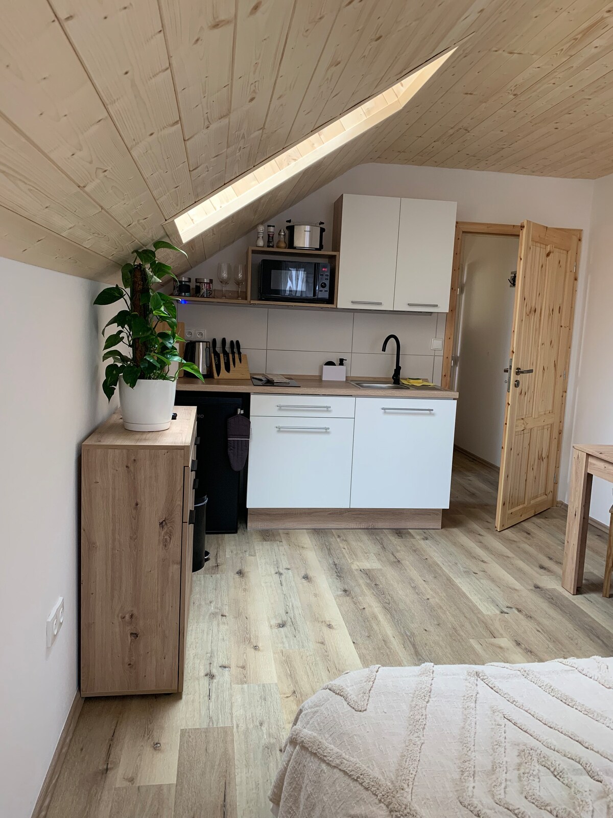 Moderne, helle Dachgeschosswohnung mit privater Dachterrasse in der historischen Altstadt Passaus. Sehr ruhige Wohngegend, dennoch direkte Anbindung in das Zentrum von Passau. Dreiflüsseeck vor der Haustüre. Parkmöglichkeit im Römerparkhaus. Voll ausgestattete Küche mit Kaffeevollautomat, Induktionsherd, Ofen, Mikrowelle, Spülmaschine. Bad mit Waschmaschine und Badewanne. 65" 4k Fernseher & High-Speed Wlan.