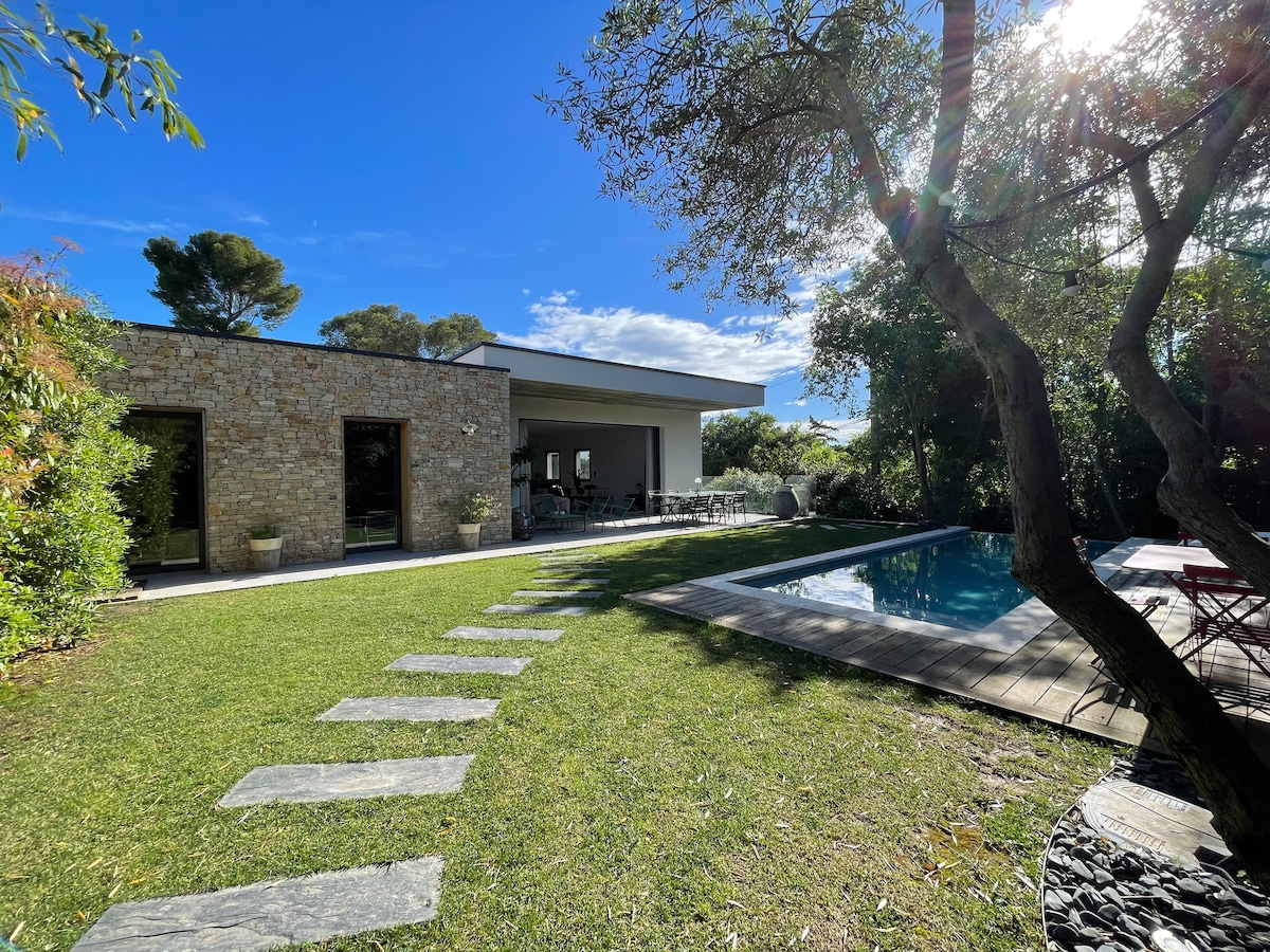 Dobro došli u našu privatnu oazu za 1 ili 2 osobe u srcu la roquette! Uživajte u bazenu sa toplom morskom vodom okruženom tropskim biljkama. Prostor će vam pružiti utočište u hladovini i spokoju. Pojedite doručak, aperitiv ili kuvajte pored bazena u kuhinji na otvorenom. Spavaća soba je klimatizovana i opremljena luksuznom hotelskom kvalitetnom posteljinom i organskom posteljinom, kako bi vaš boravak bio opuštajući i nezaboravan.