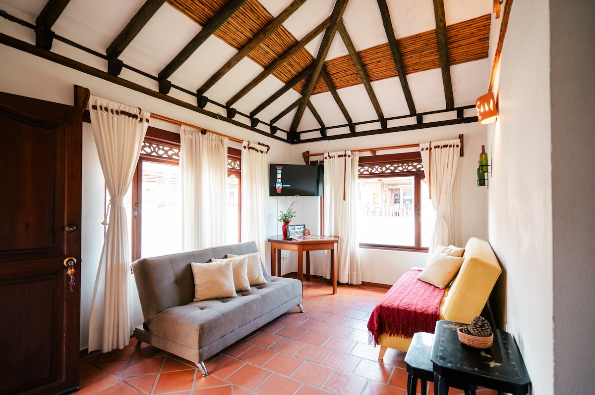 Potpuno zatvorena seoska kuća, okružena prirodom, gdje se možete odmoriti usred bezbjednog i udobnog okruženja. Naš dom u kolonijalnom stilu ima tradicionalnu arhitekturu i dobitnik je kolumbijskog arhitektonskog bijenala. Kuća ima dvije sobe, koje udobno mogu da prime do četiri gosta. Šarm zidova pokretne trake i ručno izrađenog namještaja stapa se sa savremenim sadržajima kako bi se stvorio prijatan osjećaj.