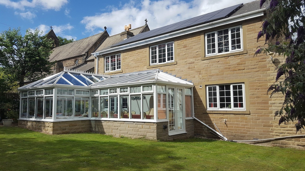Udobna, luksuzna samostojeća kuća sa 4 spavaće sobe sa tri moderna dnevna boravka i prostranom baštom u kojoj se nalazi đakuzi za 6-7 osoba i velikim ribnjakom sa Koi i leptirom. Smještaj ima veliku kuhinju potpuno opremljenu sadržajima kao što su frižider za vino, ugradne rerne, mikrotalasna pećnica i aparat za kafu. Postoji kancelarija u kojoj se nalazi kauč na razvlačenje; ima besplatan privatni parking; oprema za vježbanje je dostupna, a rezervacija je dostupna non-stop. Pogled na brda Moorsajd.