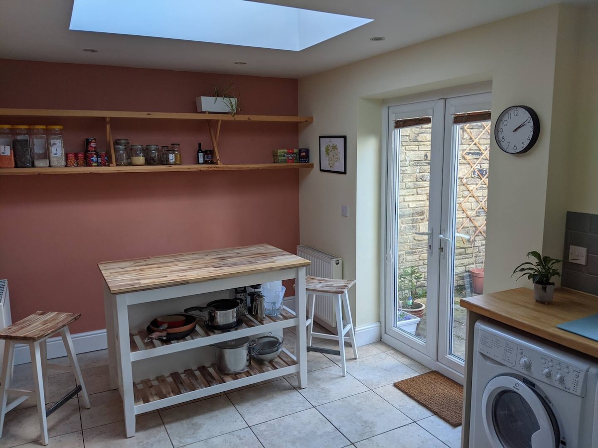 Prostrana, novo namještena kuća u nizu u centru Skiptona. Kuća se nalazi na viktorijanskim terasama izgrađenim za radnike u mlinu 1800-ih. To je savršeno mjesto za parove, male grupe i digitalne nomade koji žele da istraže Skipton i Jorkšir dales. Dolazi sa dva bicikla za istraživanje mnogih znamenitosti na vašem pragu ili kratko putovanje. Kuća je udaljena 2 minute hoda od centra grada gdje možete uživati u mnogim nezavisnim prodavnicama i restoranima.