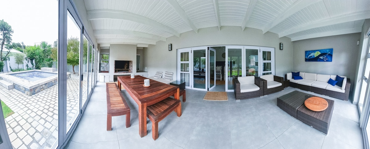 When we first opened our spot we were truly over the hills and far away... now the village has grown around us a bit, but the place can still feel pretty secluded. The architect-designed house mixes inside/outside space with plenty of room for family.. Explore wetland, river and the Langeberg mountains. With plenty of comforts this spot is paradise for children, dogs and a retreat for adults.