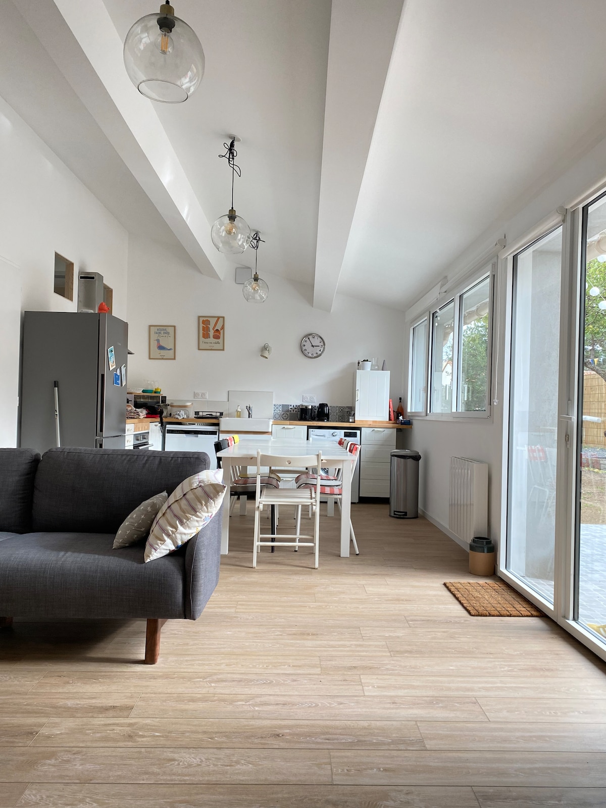 Welcome to the seaside in a contemporary and ecological housing. Enjoy the comfortable interior design with your family or friends. Make use the free bicycles, the 1500 square meters shared outdoor living with toys for children (trampoline, gantry, slide), the vegetable garden, the greenhouse and hen house. Take a walk on the great beaches of Vendée coast and relax in the heart of the Natura 2000 area of the "Dunes, forest and marsh of Olonne".