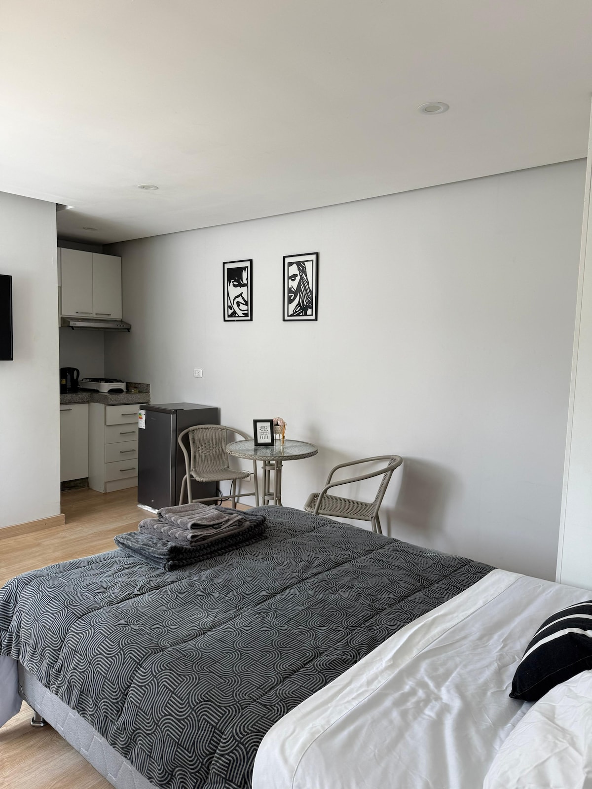 Departamento completo, cocina equipada, TV en la sala y dormitorio, ubicado en zona céntrica de Lima, fácil acceso para Centro histórico, Miraflores, Barranco, Aeropuerto, a una cuadra de principales avenidas, Arequipa, Arenales, Salaverry, cerca al Parque de las Aguas, al Estadio Nacional, Hospitales, Universidades, Ministerios, acceso con código , recepcion 24x 7, Cafeterías, Tiendas OXXO, MASS, Restaurantes. Brindamos un par de toallas grandes y chicas