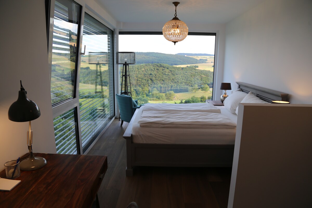 Stan spaja modernu udobnost sa seoskim mirom. Kvalitetan namještaj, s pogledom na šumu i crkvu – idealan za isključivanje i dobar osjećaj. Lokacija usred Ajfela nudi savršene uslove za opuštajuće dane u prirodi i izlete do posebnosti kao što su Nürburgring, Ahrtal ili Laacher See.